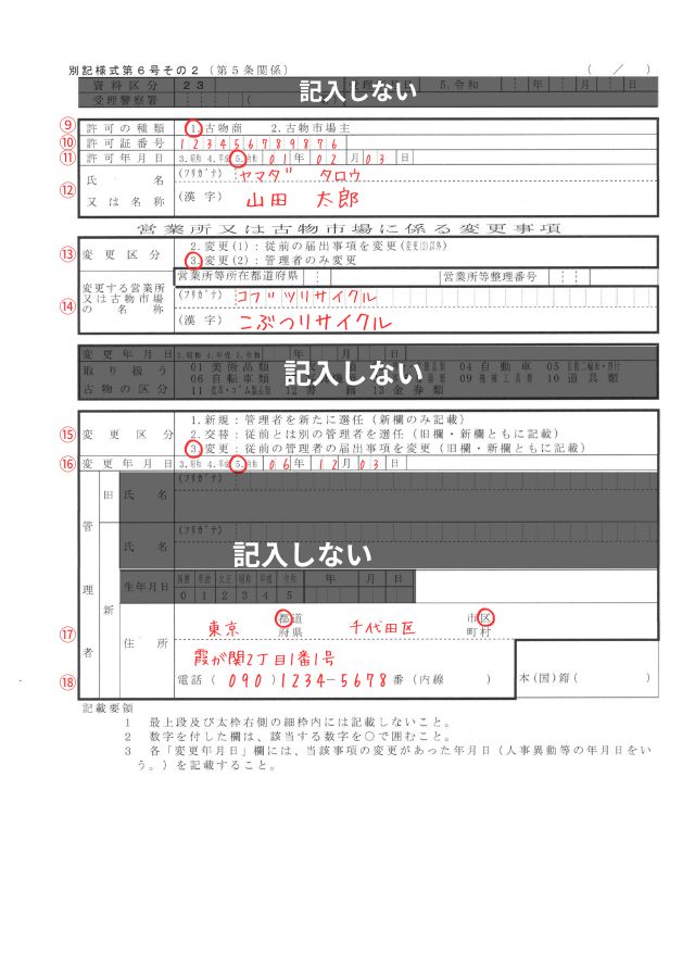 古物商の管理者が代わった場合や、管理者の住所が変更した場合には、警察署に変更届を提出しなければなりません。