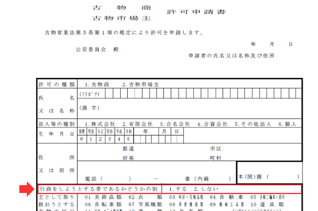 - 古物商許可を取得するなら「行商する」を選択すべき