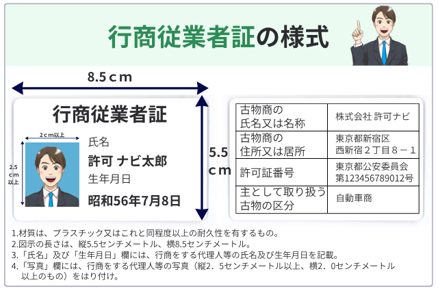行商従業者証は、古物商の従業員が行商を行う資格があることを証明する身分証のようなものです。
