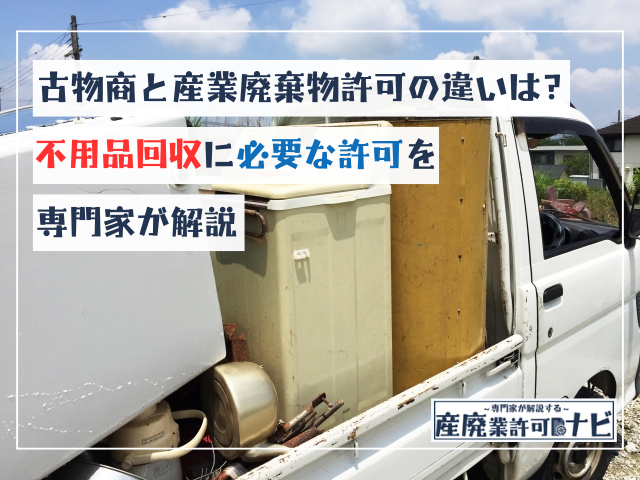といった疑問を持っている方も多いです。 結論から言うと、家庭の不用品を回収するには一般廃棄物収集運搬業許可が必要で、古物商許可や産業廃棄物収集運搬業許可だけでは違法営業になります。 この記事では、古物商許可・産業廃棄物収集運搬業許可・古物商許可の3つの許可の違いや、違反時の罰則、合法的に不用品回収ビジネスを行う3つの方法を解説します。 これからリサイクル業や産廃業、廃品回収業の開業を検討している方は是非参考にしてください。 古物商・産業廃棄物・一般廃棄物の違い 申請申請先対象物できること古物商許可警察署( ...