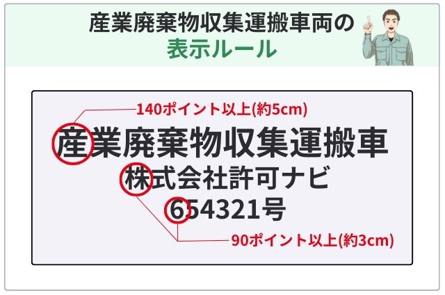 表示内容や文字サイズ、備え付け書面の具体的なルールは、廃棄物処理法施行規則第7条の2の2で定められています。
