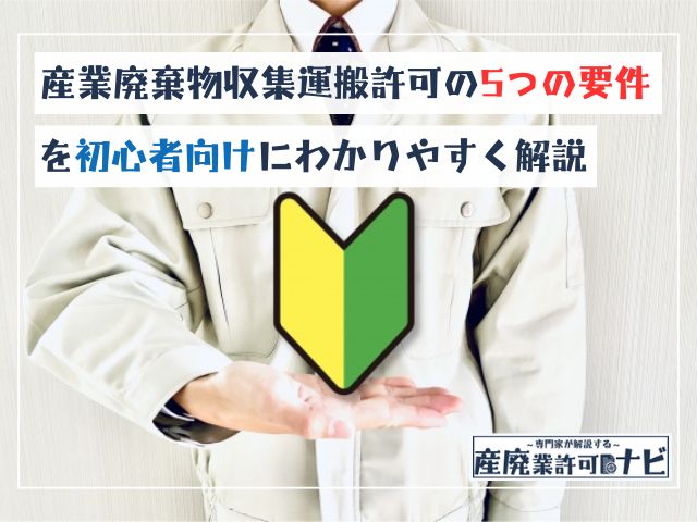 - 産業廃棄物収集運搬業許可を取得するには5つの要件をクリアする必要がある
